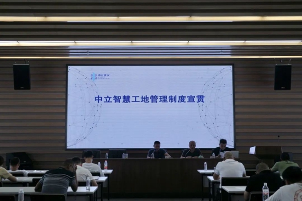 楊曉震對上半年度智慧工地開展情況進(jìn)行總結(jié)通報(bào),中立智慧工地管理制度進(jìn)行宣貫,并將流程、主管部門要求及注意事項(xiàng)進(jìn)行培訓(xùn)。