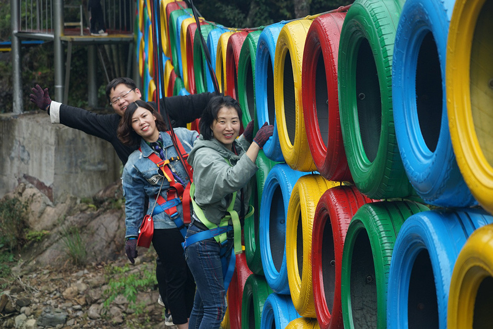 早上9點,在董事長和總經理的帶領下,大家到達目的地,員工們便開始了拓展穿越活動,大家團結協作,挑戰(zhàn)自我,突破一關又一關的項目,最終成功到達終點,大家臉上都洋溢著自信笑容。