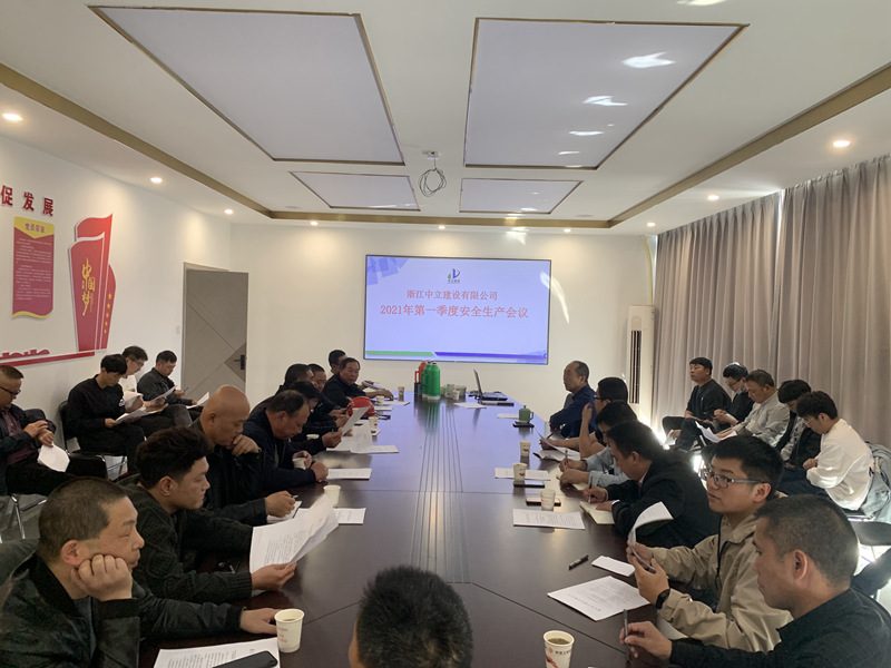 2021年4月9日下午浙江中立建設有限公司在麗水市水東綜合客運樞紐B-11-04地塊項目會議室召開了2021年第一季度安全生產工作會議。公司分管安全副總經理吳韶斌、安全部全體人員、項目安全管理人員等共40余人參加了會議。