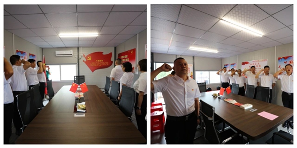 旗幟指引方向,誓詞凝聚力量,面向鮮紅的中國共產(chǎn)黨黨旗,鐘鳴同志領(lǐng)誓,黨員同志重溫入黨誓詞。錚錚誓言,表達了身為新時代共產(chǎn)黨員的責(zé)任和擔(dān)當(dāng),許下了對黨忠誠、永不叛黨的堅定承諾。