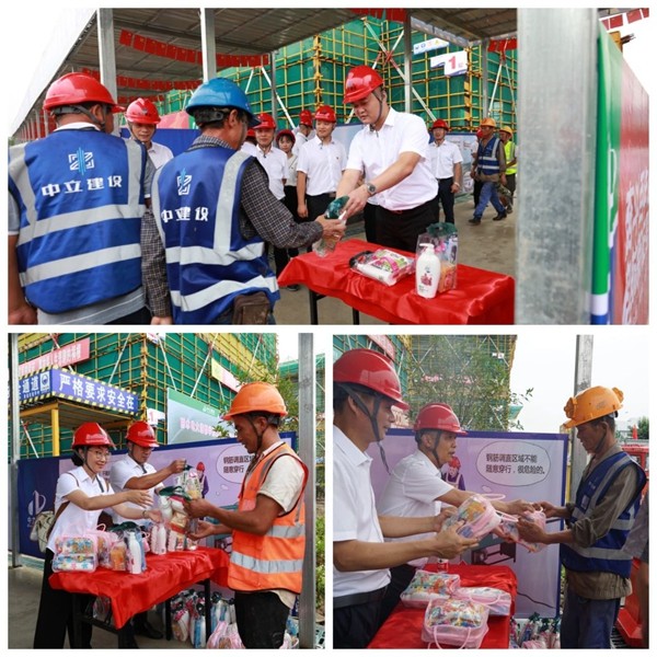 公司為高溫作業(yè)的一線工人送去慰問品,感謝大家在高溫下依舊奮斗在各自的工作崗位上,并叮囑施工人員要持續(xù)做好自身的防疫防護措施和夏季個人防暑防護工作,保持健康的身體和良好的精神狀態(tài),保障項目安全生產(chǎn)。