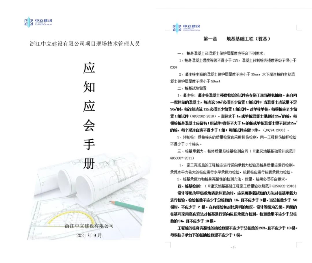 為進(jìn)一步提升公司項(xiàng)目現(xiàn)場技術(shù)管理人員的整體業(yè)務(wù)和管理水平,積極開展“質(zhì)量月”活動,根據(jù)國家標(biāo)準(zhǔn)規(guī)范,中立建設(shè)編制了《浙江中立建設(shè)有限公司工項(xiàng)目現(xiàn)場技術(shù)管理人員應(yīng)知應(yīng)會手冊》,并于9月23日發(fā)文實(shí)施。這是繼今年6月份我公司出臺的《工程質(zhì)量通病防治(2021試行)》后的又一重要技術(shù)性手冊。