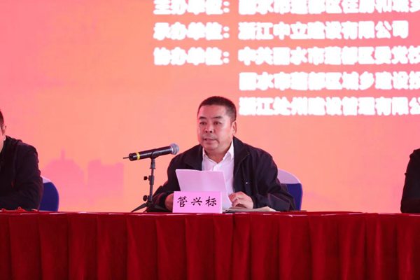 蓮都區(qū)副區(qū)長(zhǎng)管興標(biāo)、蓮都區(qū)建設(shè)局副局長(zhǎng)吳大勇、蓮都區(qū)委黨校常務(wù)副校長(zhǎng)陸朝霞、區(qū)建投公司副經(jīng)理劉良、浙江中立建設(shè)有限公司董事長(zhǎng)周健、浙江處州監(jiān)理總經(jīng)理王建武主席臺(tái)就座,蓮都區(qū)建筑施工、監(jiān)理企業(yè)代表及相關(guān)主管部門(mén)代表參加觀摩會(huì)。